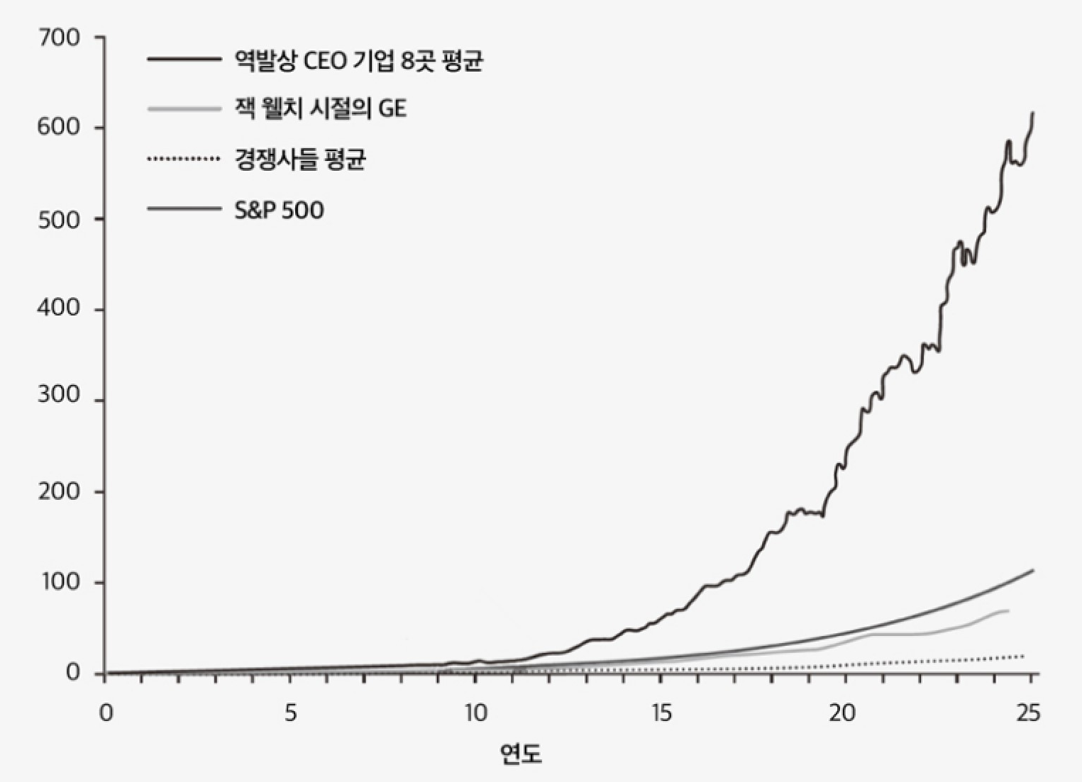 장기간에 걸쳐, 시장은 물론 잭 웰치보다도 탁월한 성과를 거둔 CEO들을 찾아내고 그 핵심 요소를 찾아보는게 이 책의 핵심입니다.