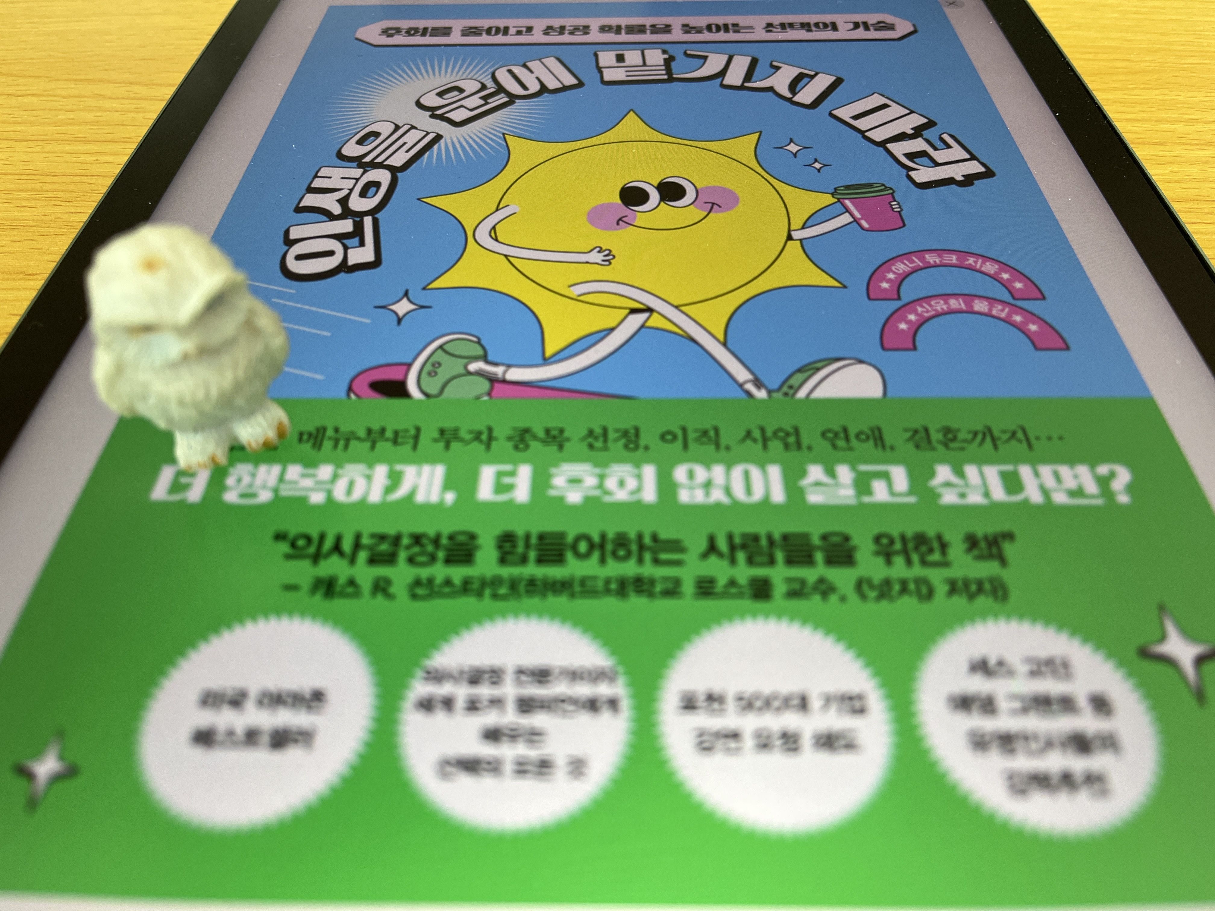 그러다보니, 제 입장에선 경영의 의사결정에 도움되는 팁이나 노하우를 얻고자 하는 목적은 못 이뤘습니다. 주로 생활이나 인생의 결정에서 도움 될 수는 있습니다. 하지만 일상에서 결정 장애 있는 분은 한번 꼭 읽어보셔도 좋을 것 같습니다. 별 셋 주었습니다.