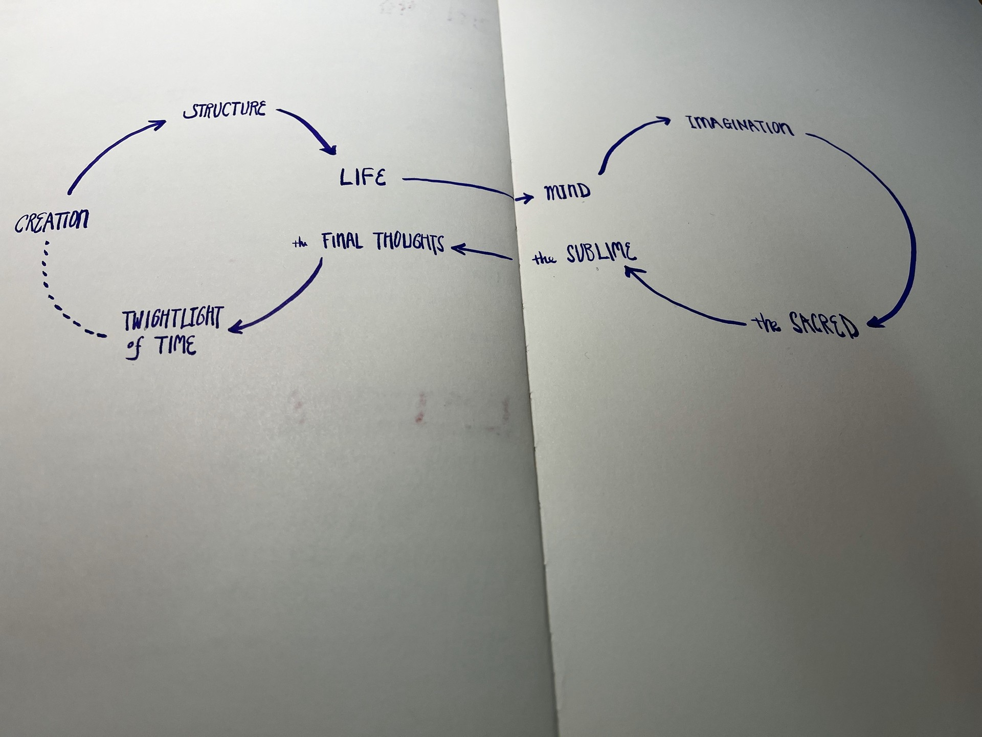 죽음을 앞둔 존재의 성찰, 진화적 선택을 위한 집중력, 세상과의 관계 정립 능력이 발현된 한 형태가 예술이라는 관점입니다. 달리 보면, 예술은 진화의 목적이 아니라 진화의 부산물인거죠. 진화는 패키지로 일어나니까요.