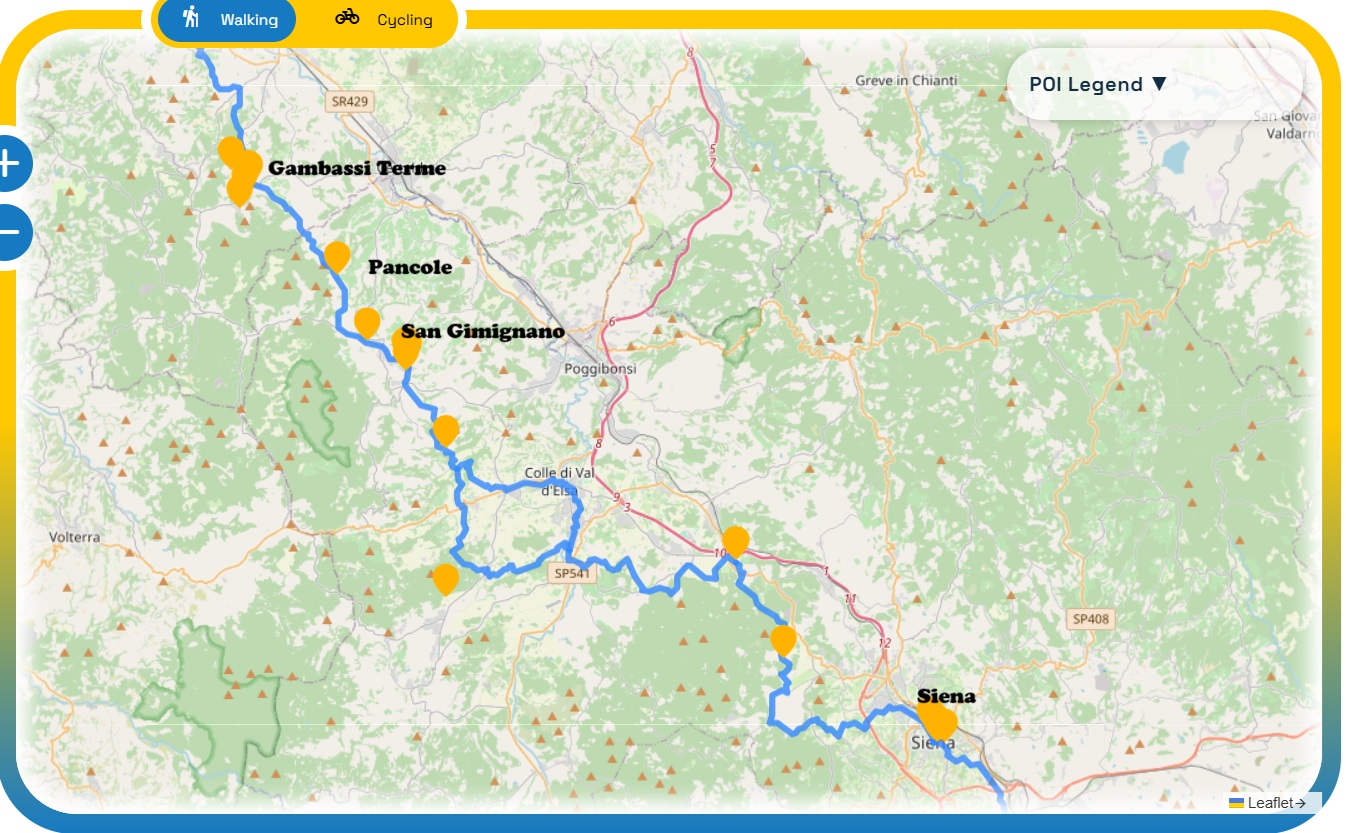 프란치제나 길(via francigena)은, 영국 캔터베리에서 출발해 도버를 지나 프랑스를 관통한 후 스위스 산지를 넘고 토스카나를 통과해 로마까지 도착하는 순례의 길입니다.