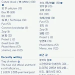 어찌하다가 어제 이 블록을 넣고 구글 번역기를 돌려봤습니다. 개인적으로 한글의 완벽한 영문번역은 어렵다고 생각하기에 그나마 저 정도라도 어떻게든 번역을 하는 것이 놀랍더군요. matching이 잘 되시나요? 1. 카테고리를 카+테+고리 로 해석해서 car reel ring. OTL 정말 뛰어난 상상력이 아닐 수 없네요. (대조해 보기 전에는 원문이 상상도 안가더군요.) 2. 다봉 = multi seal? 분명히 한자도 적어줬는데.. 정확한 번역은 tea serving 정도 되겠습니다. 3. 文化 = culture 오.. 한자도 아네요. 4. 공지 = common knowledge 이건 좀 오버네요. 여기 공지에 있는 것이 설마 모든이의 상식이 되지는 않겠지요. ^^ 5. 시간 관리 = the hour c..